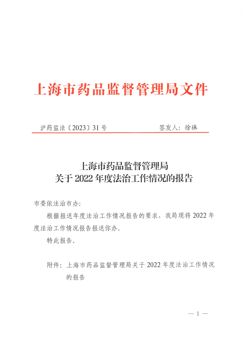 沪药监法〔2023〕31号                                                                                         签发人:徐徕