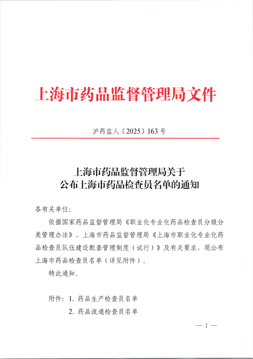 依据国家药品监督管理局《职业化专业化药品检查员分级分类管理办法》、AG真人《上海市职业化专业化药品检查员队伍建设配套管理制度(试行)》及有关要求,现公布上海市药品检查员名单(详见附件)。