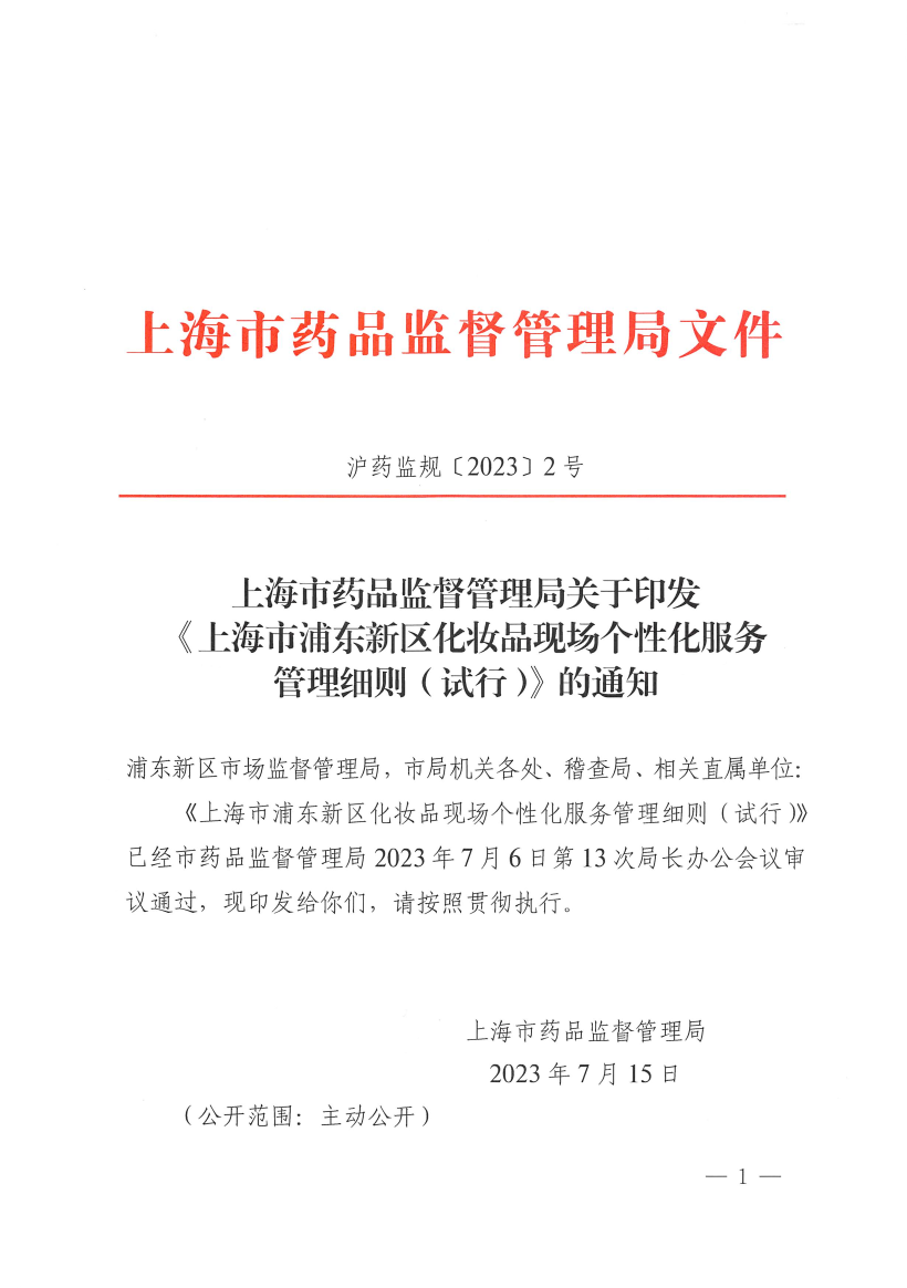 (有效期至2025年8月19日)AG真人关于印发《上海市浦东新区化妆品现场个性化服务管理细则(试行)》的通知
