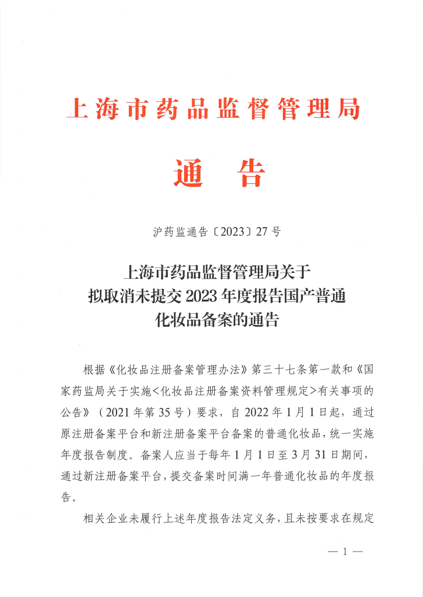 1.拟取消未提交2023年度报告国产普通化妆品备案产品清单